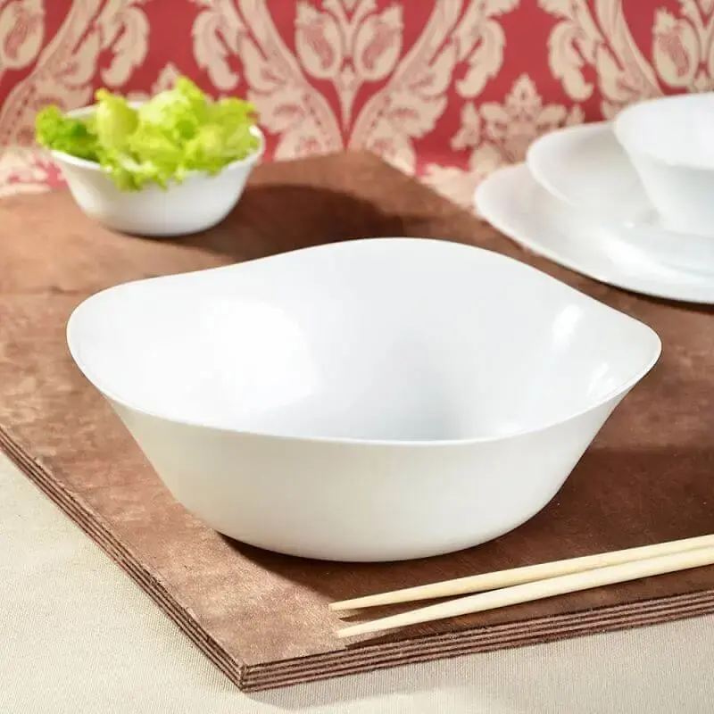 - Khác với những sản phẩm gốm sứ thông thường có lớp men phủ bên ngoài và sẽ bị mất dần, bát đĩa gốm thủy tinh opal không phủ men, nhưng màu trắng sứ sáng bóng tự nhiên và không bị phai màu theo thời gian.