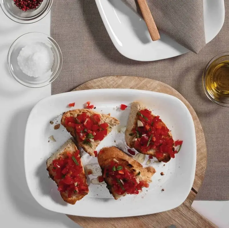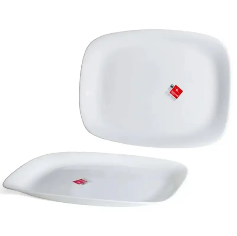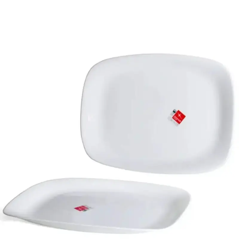 - Đĩa cao 2 cm hình chữ nhật 17 cm x 22 cm với chất liệu gốm thủy tinh opal glass, được gia nhiệt nhằm hoàn thiện chức năng và tăng cường độ bền, mang lại khả năng chịu nhiệt và chịu va đập cao gấp 3 lần các sản phẩm thủy tinh thông thường. Thích hợp để bày súp, cháo hay các món có nước sốt.