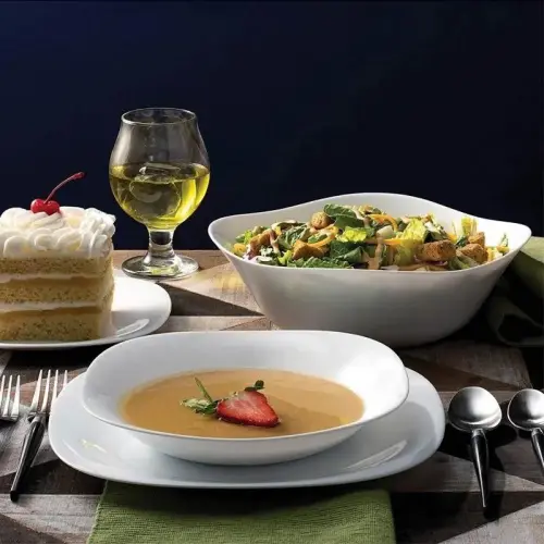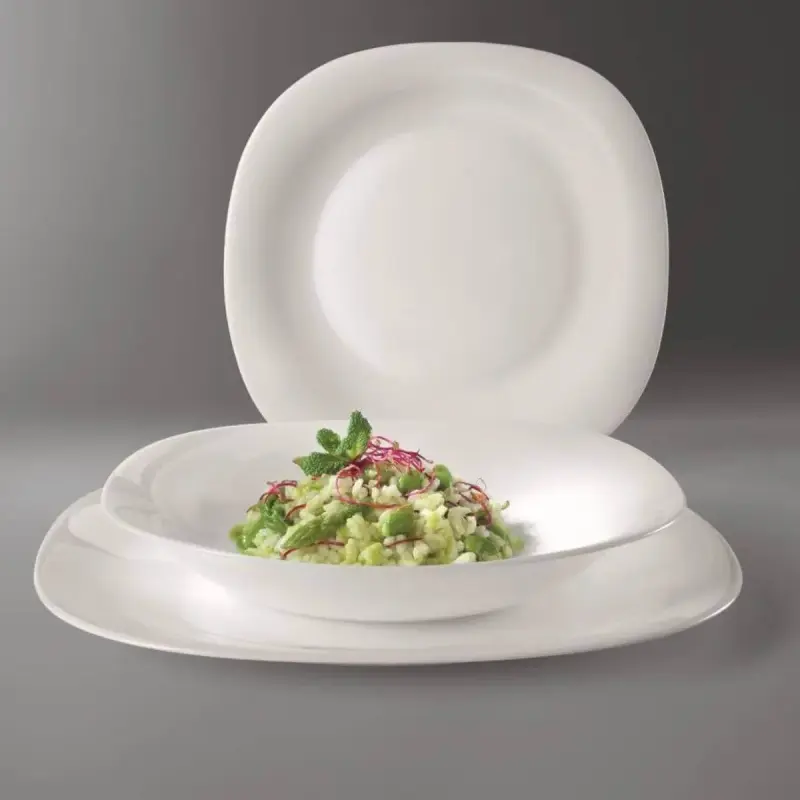 - Bất cứ món gì, từ các món có sốt cho đến các món luộc, hấp, trái cây... đều có thể bày biện đẹp mắt hấp dẫn trong chiếc đĩa hình vuông sâu lòng kích thước 23 x 23 cm. Chất liệu gốm thủy tinh opal glass, được gia nhiệt nhằm hoàn thiện chức năng và tăng cường độ bền, mang lại khả năng chịu nhiệt và chịu va đập cao gấp 3 lần các sản phẩm thủy tinh thông thường.