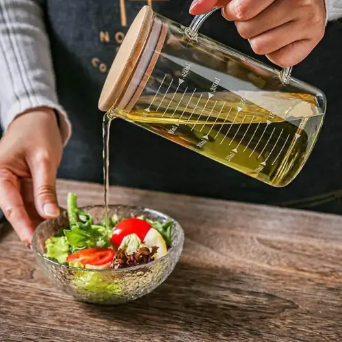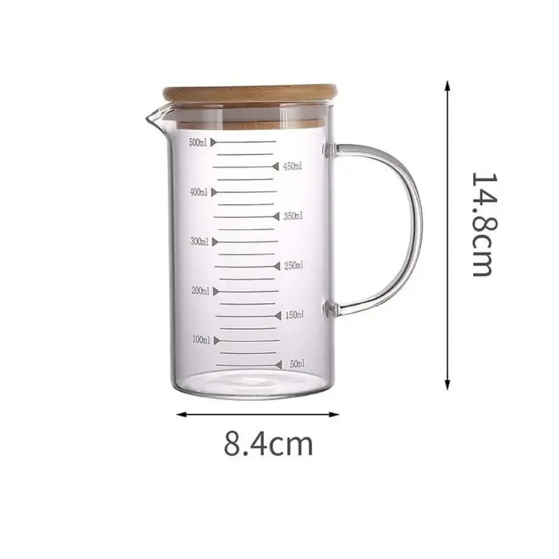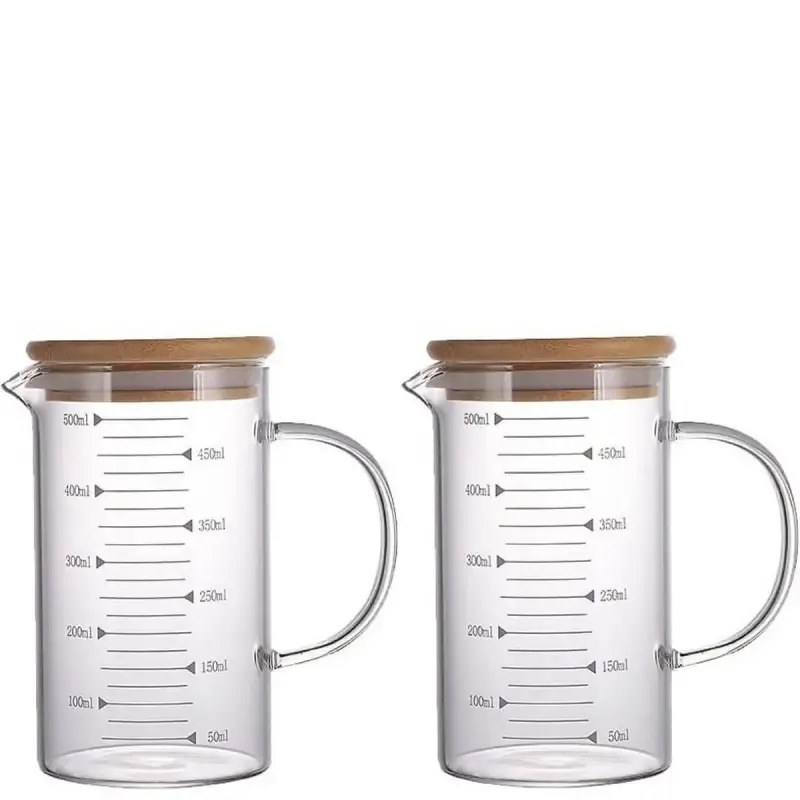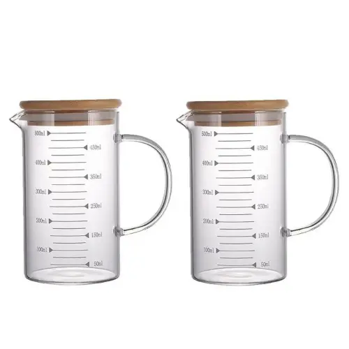 Combo 2 Ca Thủy Tinh 500ml Lường Chất Lỏng, Có Tay, Nắp Tre