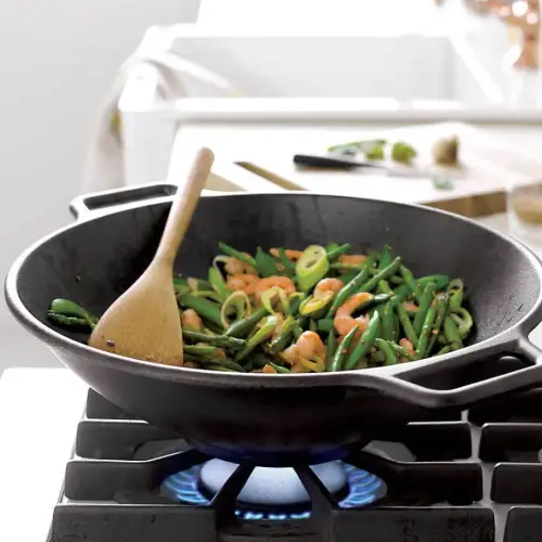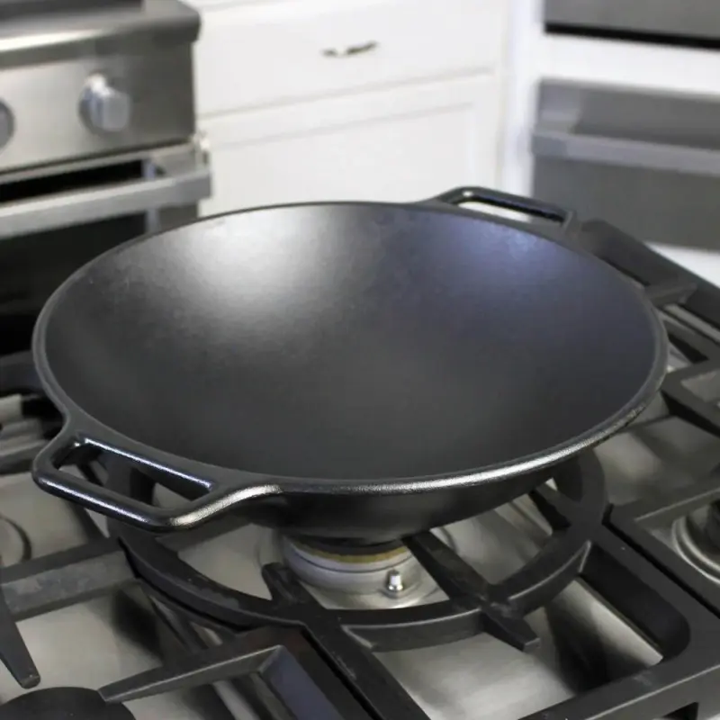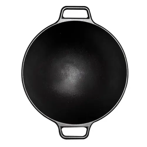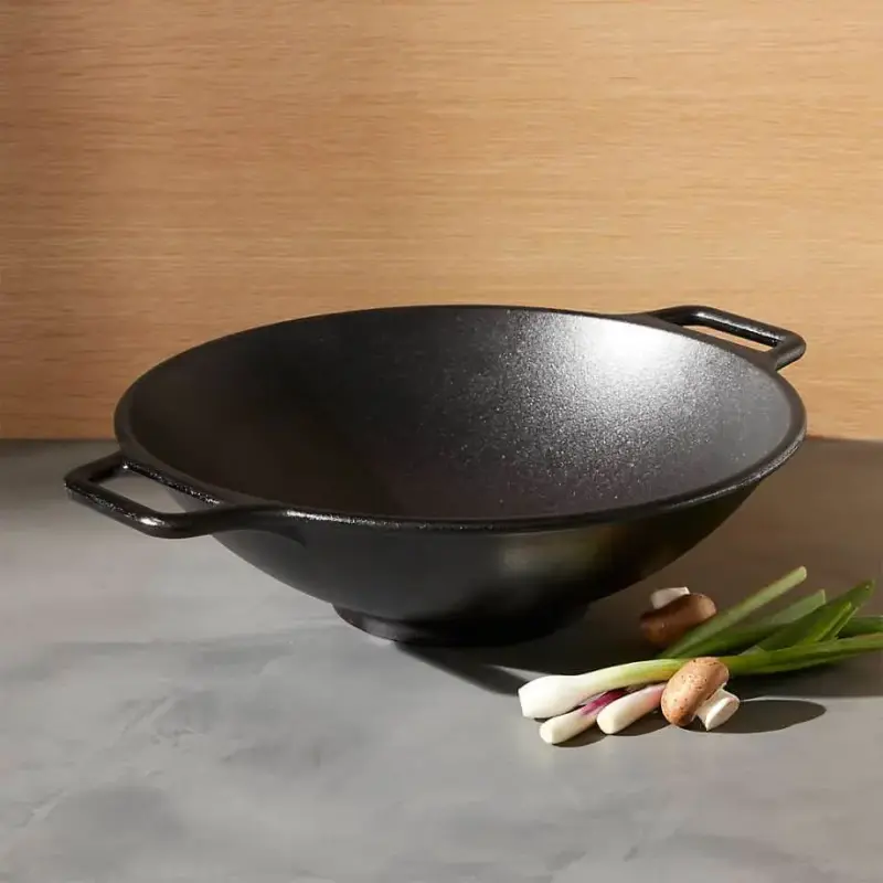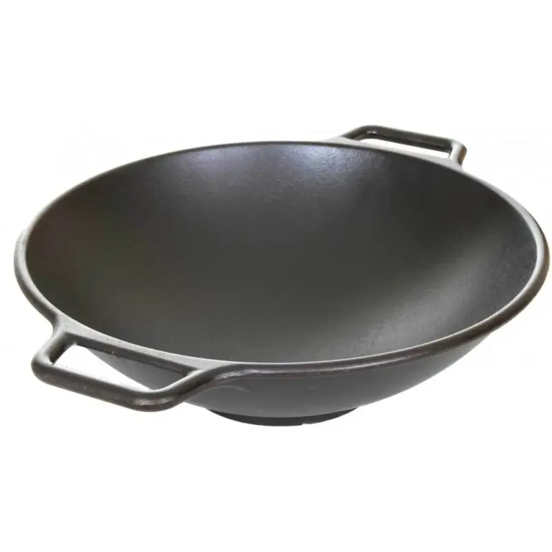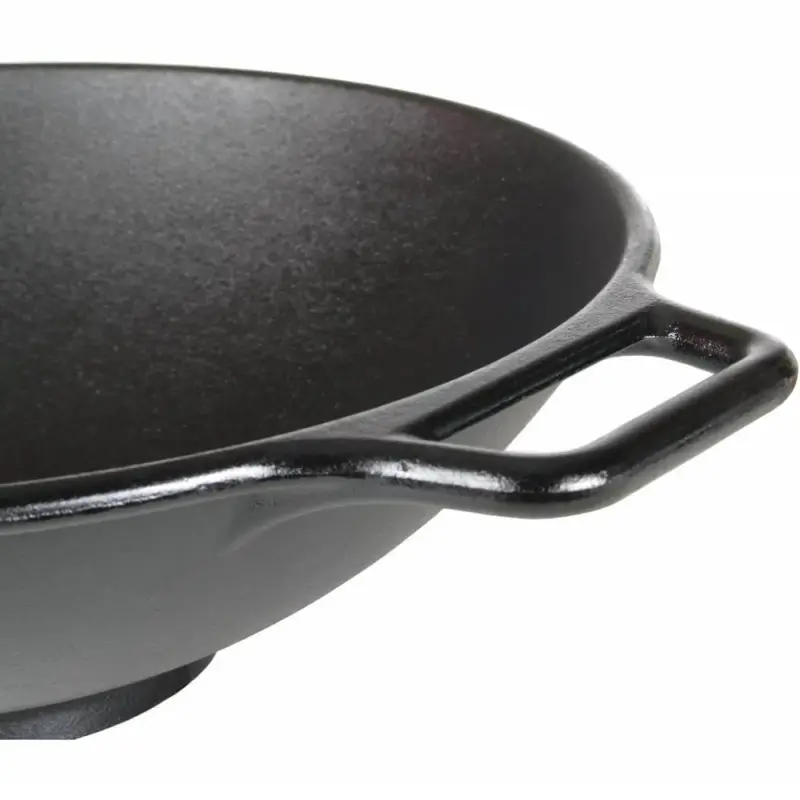 - Phần đế bên ngoài thiết kế bằng giúp giữ chảo cố định chắc chắn trên mặt bếp từ, bếp gas để bạn có thể tập trung chuyên môn nấu các món ăn ẩm thực châu Á truyền thống. Chảo gang Lodge kiểu wok không chỉ tích giữ nhiệt tốt mà còn truyền dẫn nhiệt đều khắp mặt chảo khi nấu nướng.
