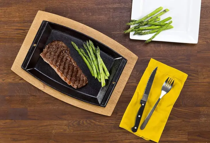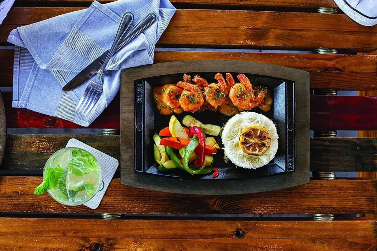 - Hãy tưởng tượng, món trứng ốp, steak, burger hay món fajita chuẩn mực nóng hôi hổi, nghi ngút khói kèm thêm âm thanh xèo xèo được nấu trên chiếc khay nướng gang hình chữ nhật Lodge LSCP3 kích thước 30 cm x 20 cm này rồi mang từ bếp, lò nướng ra thẳng bàn ăn để bạn thưởng thức.