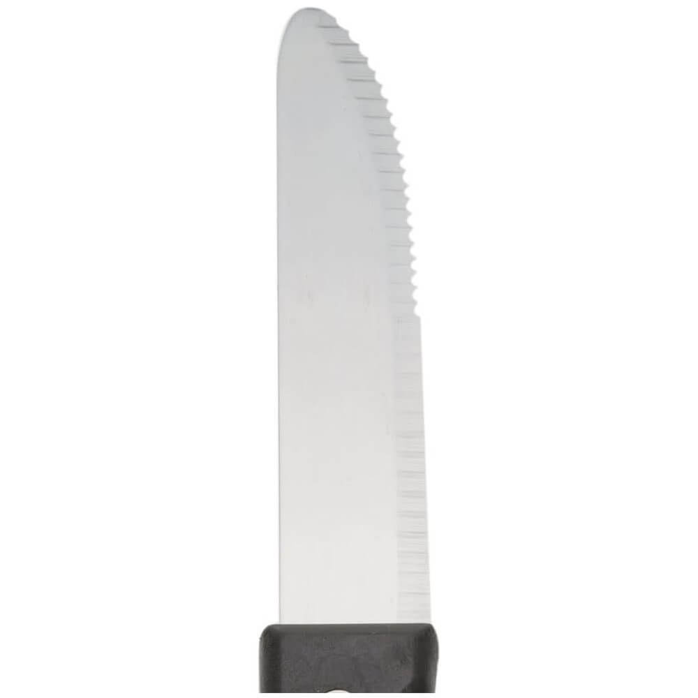 - Tay cầm kiểu dáng đẹp: Con dao bít tết này có tay cầm bằng nhựa polypropylen nhẹ, tiện dụng. Màu đen tiêu chuẩn của tay cầm mang lại vẻ cổ điển cũng như sự đơn giản để phù hợp với bất kỳ cách set up bàn nào. Hãy chọn con dao Choice này để đáp ứng các yêu cầu về ngân sách của bạn đồng thời cung cấp cho khách của bạn một dụng cụ hấp dẫn và thiết thực.
