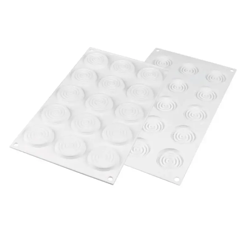- Sáng tạo những món tráng miệng hình tròn rồi được tạo hình trang trí với chiếc khuôn silicon làm bánh 15 ngăn đến từ Silikomart Italy. Với cấu trúc linh hoạt, chất lượng cao được làm từ 100% silicone bạch kim lỏng an toàn cho sức khỏe người dùng nên khuôn này là một phụ kiện bổ sung cần thiết cho bất kỳ tiệm bánh mì, cửa hàng bánh ngọt hoặc cơ sở sản xuất bánh kẹo sô cô la..