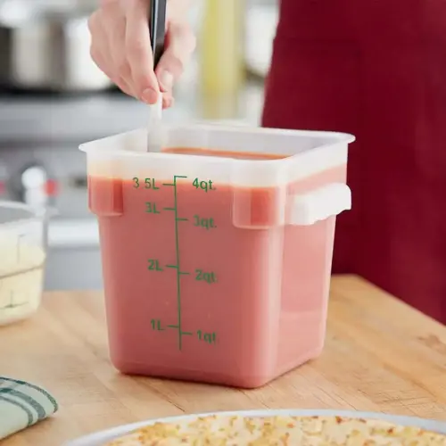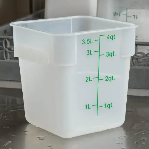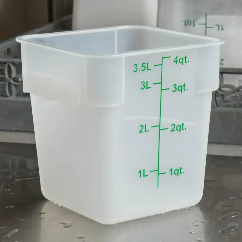 - Vạch chia mức dung tích màu xanh đậm được in ở mặt bên của hộp cho phép bạn dễ dàng đo lường ngay lập tức thực phẩm dạng lỏng. Để sử dụng thuận tiện, các vạch đo được in cả đơn vị (quart) và đơn vị (lít).