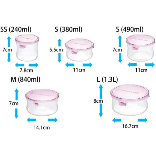 - Hộp thủy tinh hình tròn dung tích 240 ml nắp cài thích hợp để bạn đựng thực phẩm mang ra ngoài, bảo quản trong tủ lạnh hay hâm nóng thức ăn trong lò vi sóng (không đậy nắp).
