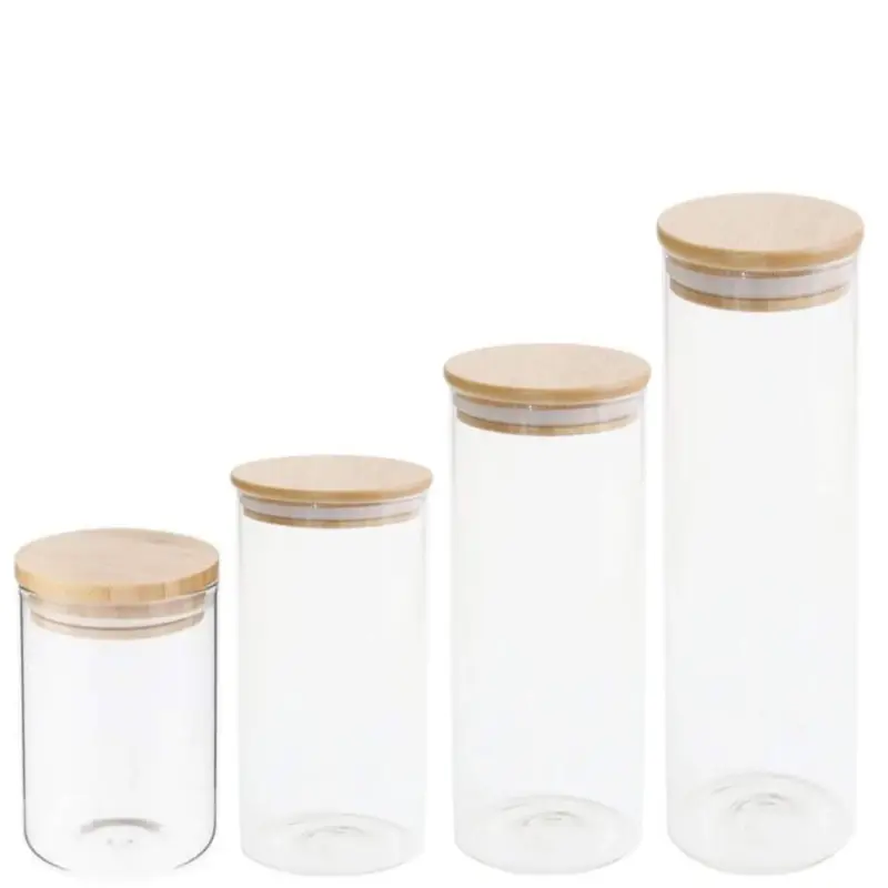 Combo (4) Hũ Thủy Tinh Tròn Nắp Tre Hít Kín Hơi CB04002