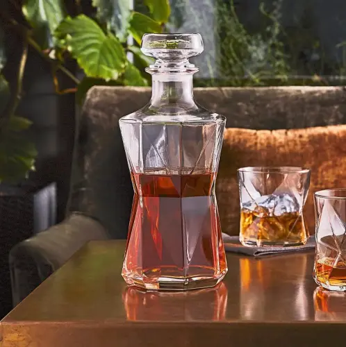 - Thiết kế cá tính, năng động nhưng không kém sang trọng, bình rượu thủy tinh series Cassiopea Ý phù hợp với phong cách hiện đại với các vết cắt đa giác ấn tượng trên bề măt, tạo ra ánh sáng lấp lánh, lung linh khi kết hợp ánh sáng.