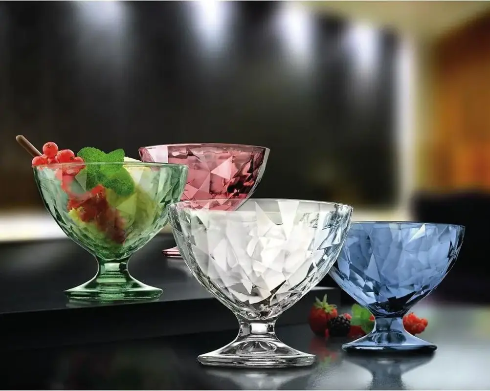- Hãy trang điểm thêm vào bàn ăn nhà bạn bộ (6) ly kem thủy tinh cao cấp series Diamond đến từ Bormioli, Ý bởi nó được chế tác từ vật liệu thủy tinh cao cấp màu tuyệt đẹp, các họa tiết trang trí hình cấu trúc kim cương tinh xảo nhìn sinh động sang trọng.