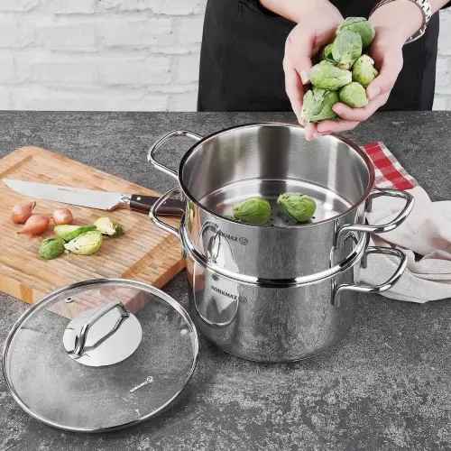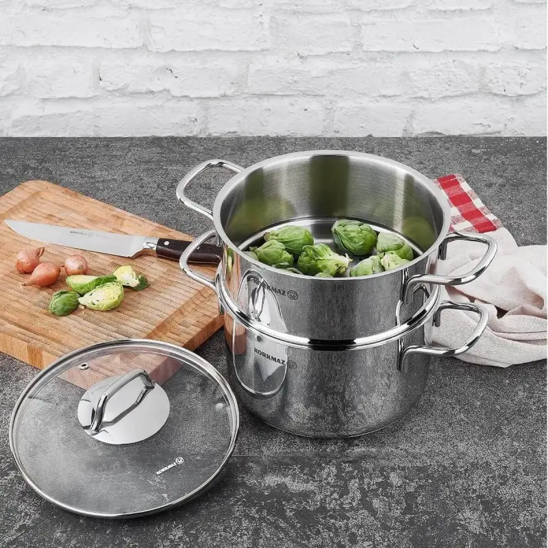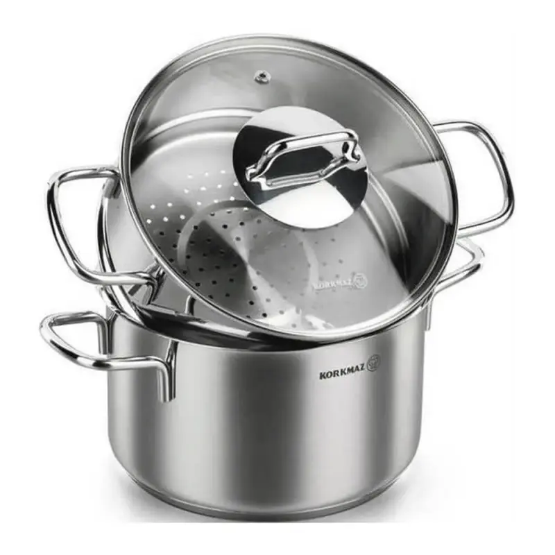 Nồi Inox Đáy Từ 20cm - 3.5L Kèm Xửng Hấp Nắp Kính Korkmaz Perla