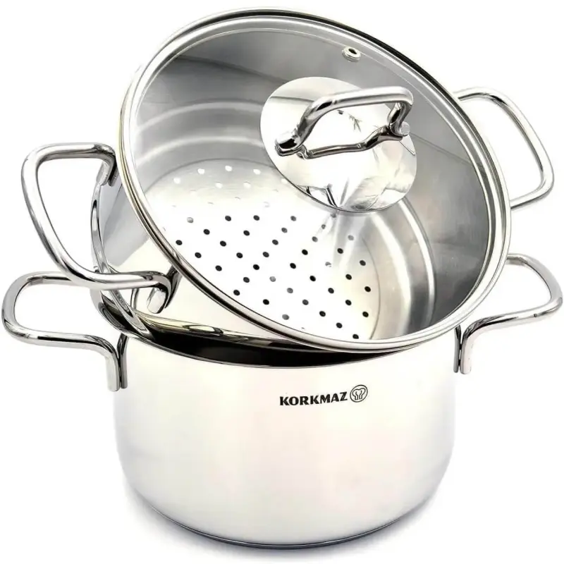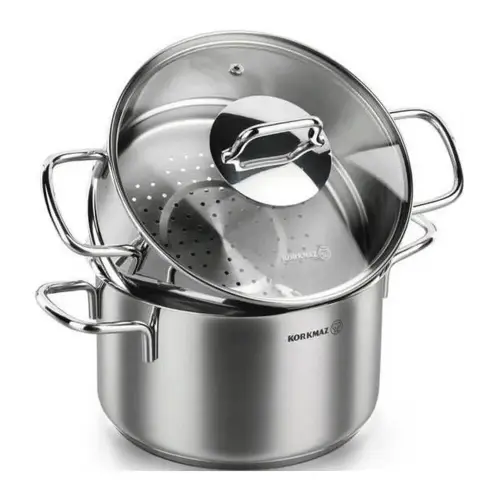 - Bộ Nồi & xửng hấp inox Korkmaz Perla 3.5 lít nắp kính cường lực là dòng nồi chảo cao cấp của thương hiệu Korkmaz, được sản xuất 100% tại Thổ Nhĩ Kỳ.